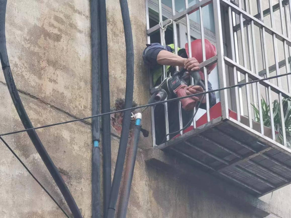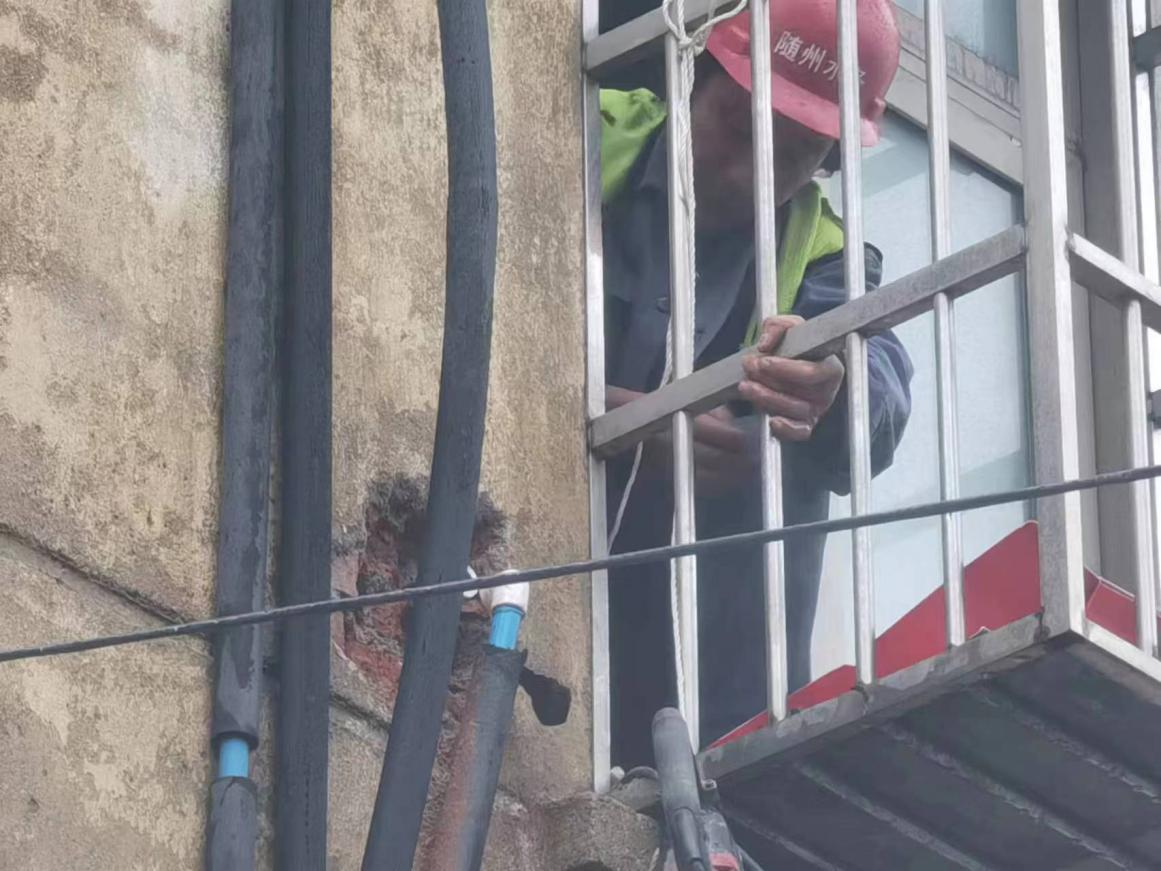 這里水管漏了,外面的墻都打濕了,麻煩你們快來看看啊!”320日上午8點(diǎn)30分,建設(shè)工程公司接到市民的求助電話,稱他家墻外有根水管在向外冒水。運(yùn)維中心牽頭人張遠(yuǎn)燈立即安排維修人員第一時間趕往現(xiàn)場。經(jīng)過詢問和現(xiàn)場查看后,發(fā)現(xiàn)事故原因是2樓外墻進(jìn)屋處彎頭漏水,但該項維修內(nèi)容本不屬于公司的維修范疇。維修人員看到無助的老人,便毫不猶豫地爬上2樓陽臺,在狹窄的空間內(nèi)艱難地為老人更換破損管件。是用戶房屋內(nèi)部管道漏水,水務(wù)人本著想用戶所想,急用戶所急的服務(wù)精神,不計較、不推諉的幫助用戶及時解決漏水難題。