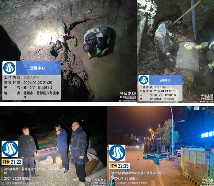 1月23日,有市民反映鐵路片區(qū)下坡處地面有積水,附近有學(xué)校,周邊住戶也較多,對市民出行造成極大安全隱患。測漏人員第一時間到場勘查,排查后發(fā)現(xiàn)漏點在下坡處拆遷區(qū)內(nèi),工作人員及時與當(dāng)?shù)厣鐓^(qū)居委會和相關(guān)部門取得聯(lián)系,經(jīng)過多方協(xié)調(diào),滿足施工條件后,立即組織搶修隊伍進(jìn)行開挖,在寒風(fēng)凜冽的深夜,搶修人員爭分奪秒,全然顧不上他們已凍得通紅的雙手,只希望以最快速度完成改造作業(yè),最大程度減小停水作業(yè)對居民的影響。當(dāng)晚21點25分歷時3小時將DN100管道漏水點搶修完畢,保障了極寒天氣下周邊居民、學(xué)生出行的安全。