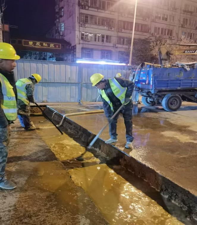 施工員和安全員組成的黨員攻堅組連續(xù)作戰(zhàn)30個小時,安全督導員嚴格監(jiān)測,施工噪音始終控制在55分貝以下,揚塵數值較常規(guī)施工降低40%,真正實現(xiàn)“無聲守護”。技術團隊創(chuàng)新應用管道非開挖修復技術,將施工面壓縮至傳統(tǒng)工藝的1/3。
