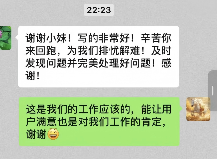這位用戶表示,要將隨州水務員工的專業(yè)與熱情分享給身邊人,直言“你們工作時熱情的態(tài)度值得我們學習”。面對用戶的盛贊,網(wǎng)格員一句“你再表揚我就要飄了”的俏皮回應,讓這場服務與被服務的互動更添溫情。